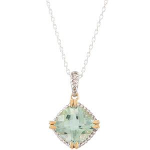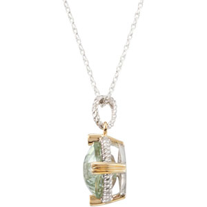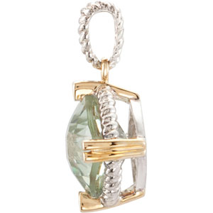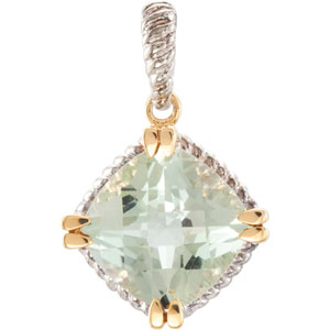 Sterling Silver & 14K Yellow Genuine Green Quartz Pendant. Set with 1ea 7.400 Ct -- 12x12 MM, A Gemstone Prasiolite (Green Amethyst).