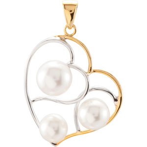 Sterling Silver & Yellow Gold Plated Freshwater Cultured Pearl Pendant. Sterling Silver. 5.5 - 6MM / 6-6.5MM / 7-7.5MM.