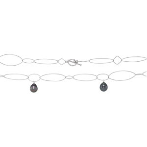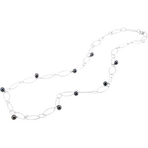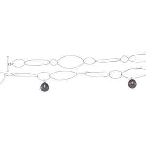 Tahitian Cultured Pearl 50" Necklace. Sterling Silver. Set with 9ea 9-10 MM, CIRCLE Gemstone TAHITIAN PEARL.