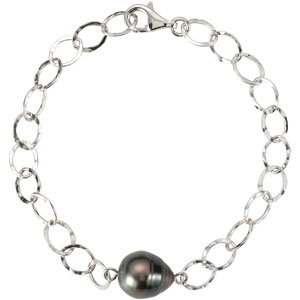 Tahitian Cultured Pearl 7" Bracelet. Sterling Silver. Set with 1ea 9mm MM, Gemstone Tahiti Black Pearl.