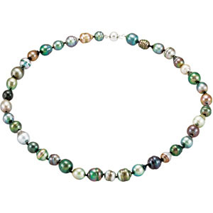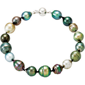 Tahitian Cultured Pearl Bracelet and Necklace Set. 14K White Gold. 8.00-10.00 MM tahitian pearls. Bracelet 8 inches & Necklace 18 inches.