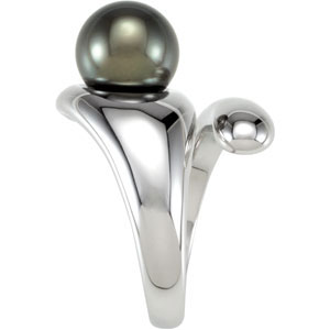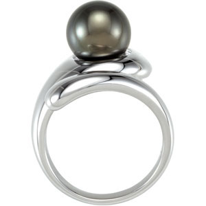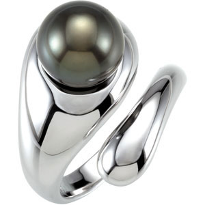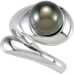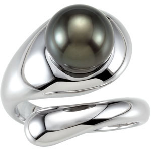 Tahitian Cultured Pearl Bypass Ring. Ref. 6439. Sterling Silver. Set with 1ea 9-10 MM, Round Gemstone Tahitian Pearl.