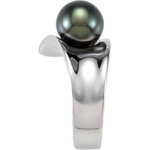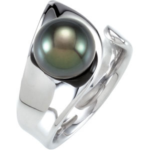 Tahitian Cultured Pearl Open Shank Ring. Sterling Silver. Ref. 6440. Set with 1ea 9-10 MM, Round Gemstone Tahitian Pearl.