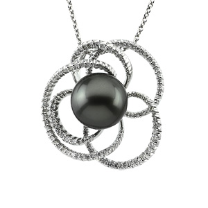 Tahitian Cultured Pearl & Diamond Pendant | 11 mm Round/Near Round | 1/2 Carat TW. 14K White Gold. Shown with CH70 solid rope chain which is sold separately.