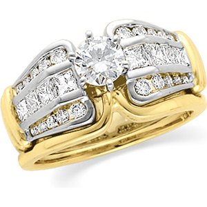 Two Tone Diamond Semi Set Engagement Ring | 1 Carat TW Round & Princess Cut Side Diamonds. Center stone sold separately. Matching band, which was sold separately, is no longer available.