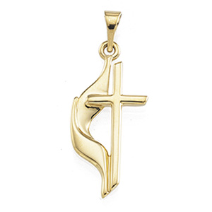 The distinctive design of the Methodist Cross incorporating the flame of the Holy Spirit and the cross of Christ was adopted in 1968 as the official symbol of the United Methodist Church. Also available in Sterling Silver ref. SKU SS-R16295.